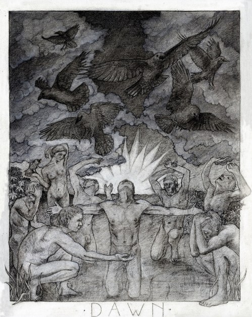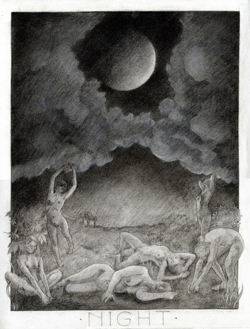 The figures in these drawings are all taken from life or from pose books, I have drawn most of them several times before drawing them into these compositions. Combining several drawings can be difficult because the perspectives and lighting do not match, drawing the poses separately helps me to understand these elements and create a more convincing combination.